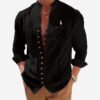Featuring unique loop closures with metallic buttons, this shirt stands out effortlessly. A structured chest pocket and subtle vertical seams enhance its modern appeal. Rolled sleeves add a touch of laid-back confidence.