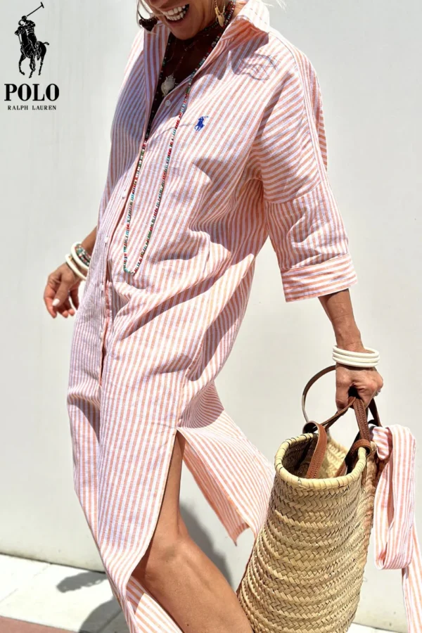 Whether you’re heading to brunch with friends, a day at the office, or an evening out, the Ralph Lauren – Elegant Shirt Dress rises to every occasion. Its flattering cut and elegant stripes make it a true standout piece, while its breathable fabric ensures you stay comfortable all day.