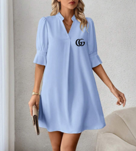 This Gucci – New Elegant Dress blends minimalist design with a refined silhouette, offering a polished look suitable for various occasions. Its clean lines and flowing cut provide effortless sophistication and a graceful presence. The structured neckline adds a touch of modern charm to the overall classic appeal.