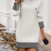 Subtle yet impactful, the dress features striped accents on the collar, cuffs, and hemline, adding a playful yet polished contrast to its clean design. The structured neckline enhances the overall elegance while providing a contemporary twist. Every element, from the fine stitching to the discreet logo embroidery, reflects the brand’s dedication to detail and superior craftsmanship.