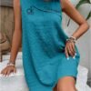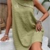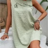 Crafted from a textured, lightweight fabric, this dress offers both comfort and breathability. Its sleeveless cut ensures freedom of movement, making it ideal for casual outings or summer getaways. The loose fit enhances its relaxed vibe.