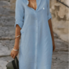 I bought this dress for work and casual outings, and it fits the bill perfectly. The breathable fabric keeps me comfortable, even on busy days.