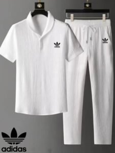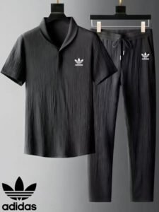 Made from breathable, textured fabric, the Adidas – New Trendy Set features a relaxed short-sleeve top with a stylish open collar and matching drawstring pants. The soft, crinkled material ensures ventilation and flexibility, making it ideal for warm days or cozy indoor moments.